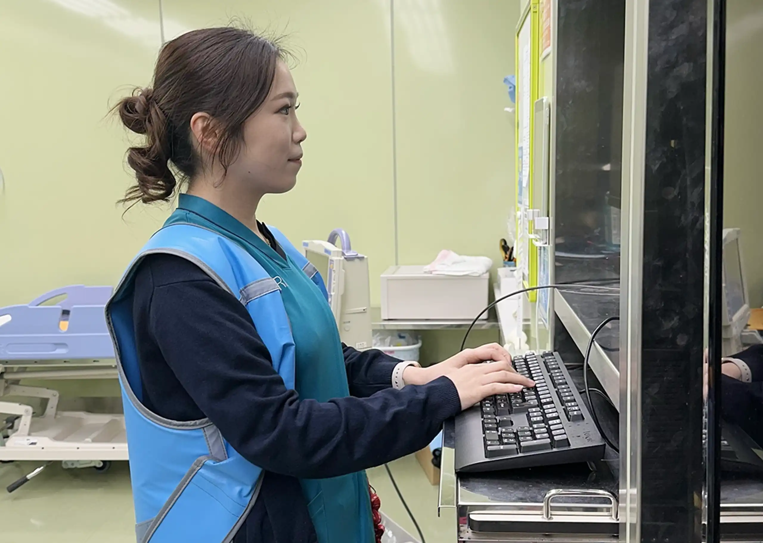 医師事務補助作業者は診療録の記載、検査オーダーの代行入力や予約、各種書類の作成など医師の事務的業務を医師の指示のもとサポートする職種です。医師のサポートを行ないながら、外来診療や病棟など幅広い現場で働いています。
